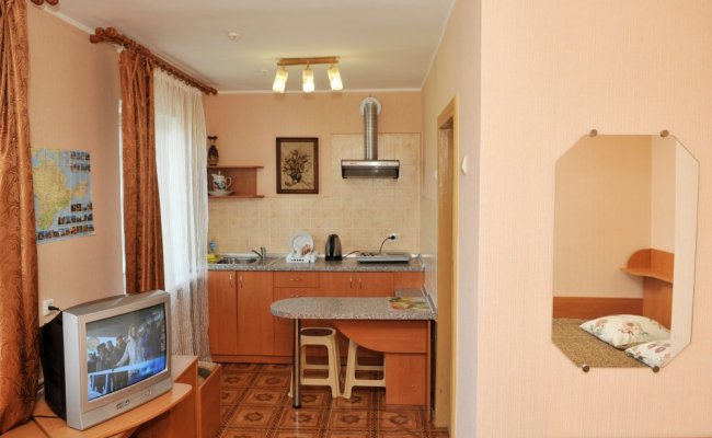 Питание не входит в стоимость проживания, но вы можете снять номер в Евпатории с кухней, либо воспользоваться общественной кухней для самостоятельного приготовления еды. Также на территории мини-отеля "Апогея" располагается недорогое кафе, где Вас накормят вкусной и домашней едой. При позднем заезде, администратор кафе может собрать для вас ланч-бокс.