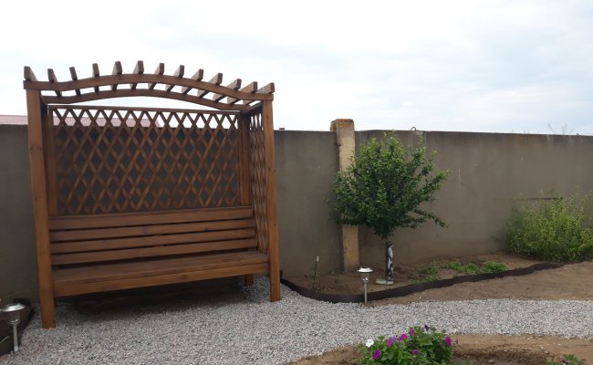 - детская площадка с качелями, горкой, батутом и велосипедами;