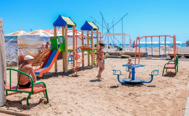 - специальная зона тени для детей на пляже, с бесплатными пляжными игрушками и аксессуарами, детская площадка.