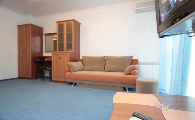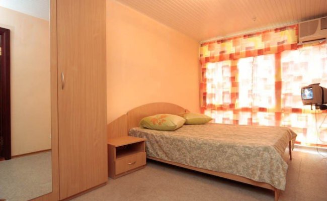 - Бунгало - «Люкс»- (19 домиков) расположены на первой линии и тянутся вдоль аллеи, ведущей к морю. Бунгало (кирпичный дом) состоит из 4-х номеров. Вход в каждый номер отдельный.
