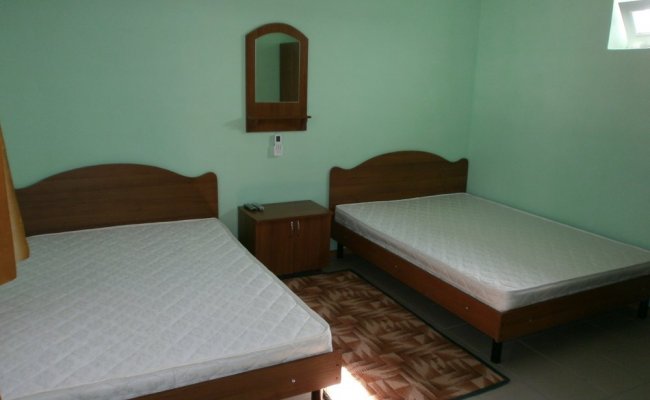 Эконом - новые кровати, тумбочка, вешалка. Кухня и душ (всегда чистые) общие на территории.
