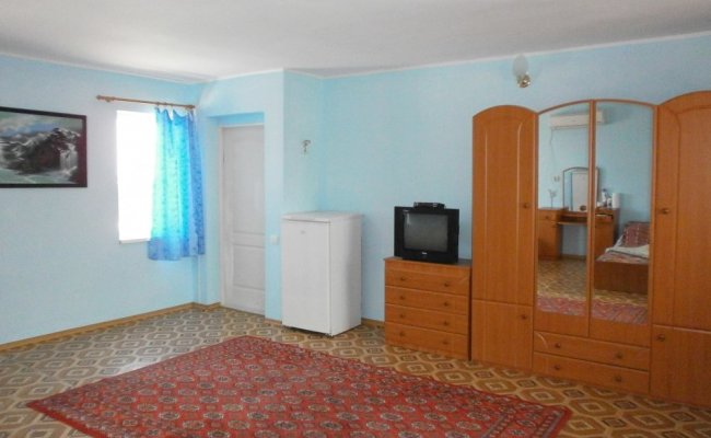 Люкс - в номере туалет, душ с горячей и холодной водой, кухня, спутниковое ТВ, две двуспальные кровати, необходимая мебель, холодильник.
