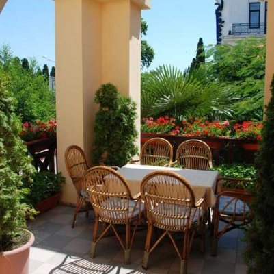 На первом этаже отеля гармонично вписался ресторан, в котором профессиональные повара удовлетворят любой каприз гурманов, а так же Бар с великолепной коллекцией крымских вин.