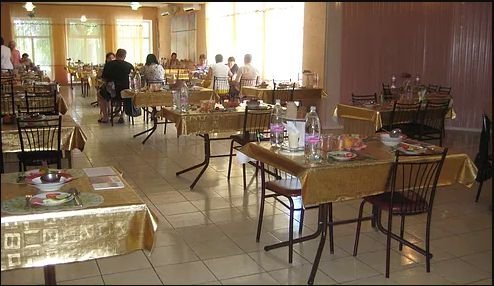 Питание отдыхающих осуществляется в комфортабельной столовой на 500 мест с раздельными кабинками. Питание 5-ти разовое: завтрак, обед, полдник, ужин, перед сном - кефир. В него входит и диетическое питание (диет 5, 6, 7, 9, 10, 15) с использованием компонентов амевита, которые выводят из организма радионуклиды. Гарниры, салаты предлагаются на выбор отдыхающих. В меню ежедневно включаются разнообразные свежие овощи и фрукты, выращенные в нашем экологически чистом крае, натуральные отечественные соки, молочные продукты. Сухое красное натуральное вино и сергеевская минеральная вода подаются ежедневно к обеду.