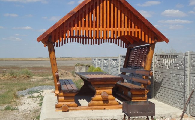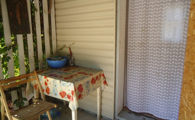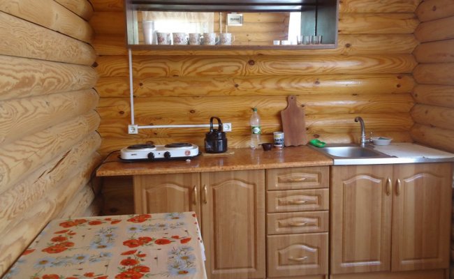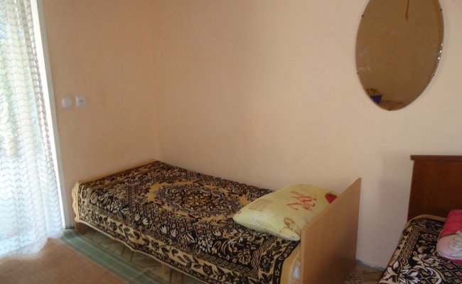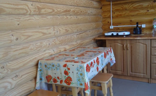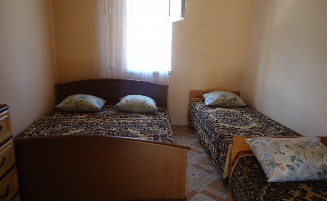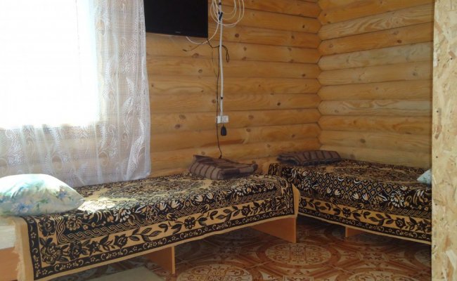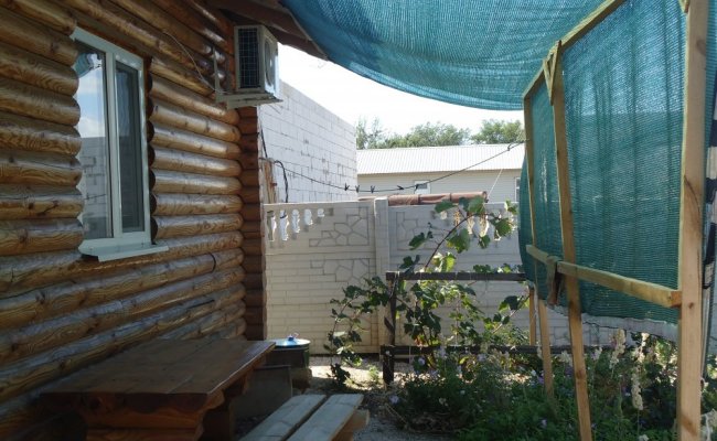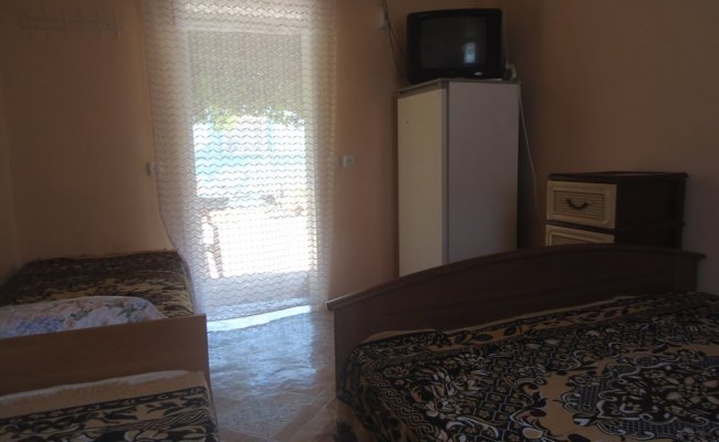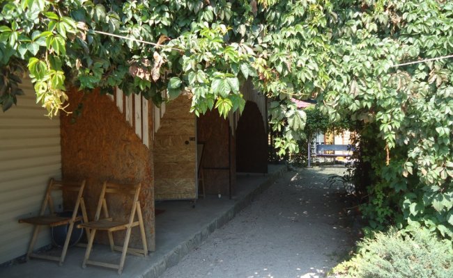 Сдаются комфортабельные 3-х и 4-х местные комнаты, в комнате имеется холодильник, новые кровати, стол, стулья, комод, кондиционер. Возле каждой комнаты есть терраса. Туалет, душ и кухня находятся на улице. В кухне есть вся необходимая посуда для приготовления и приема пищи, газовые печки. Уютный дворик, есть место для парковки автомобилей, детская площадка, мангал. До моря 5-7 минут ходьбы. Также есть отдельные 4-х местные апартаменты класса «люкс» со всеми удобствами в деревянном срубе. В наличии отдельный санузел, душ, горячая вода, кухня с посудой, мойкой и холодильником, есть телевизор. Задний дворик с видом на лиман
