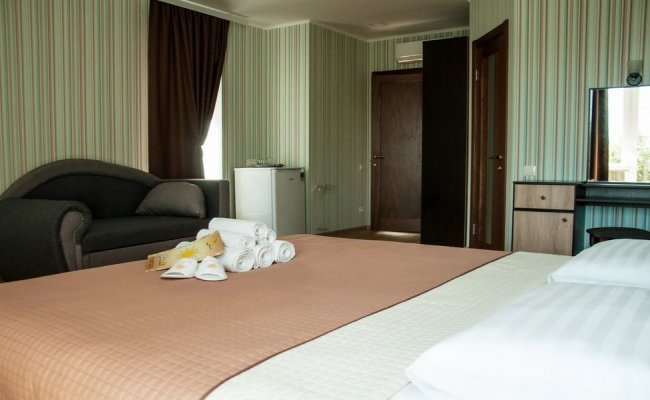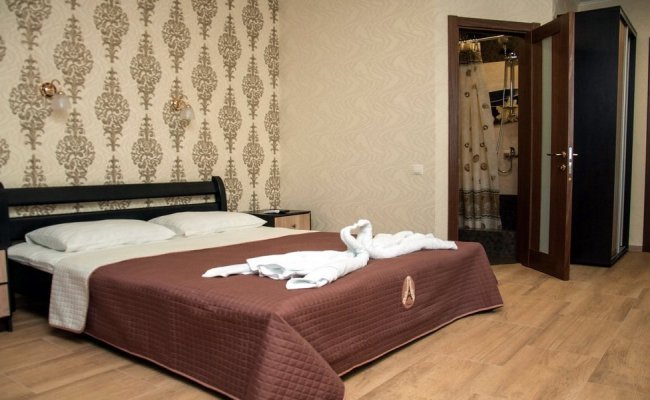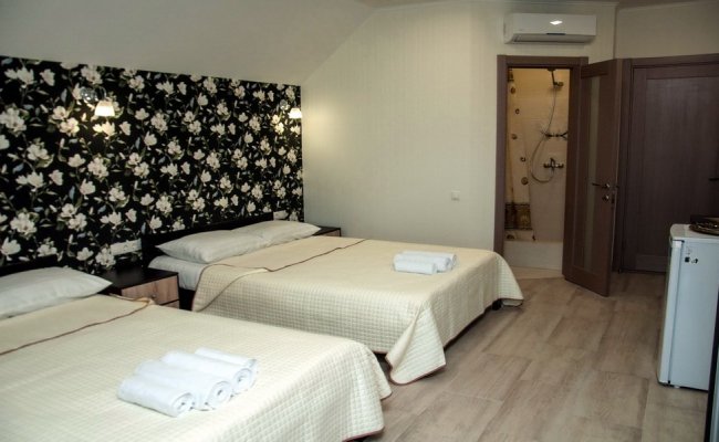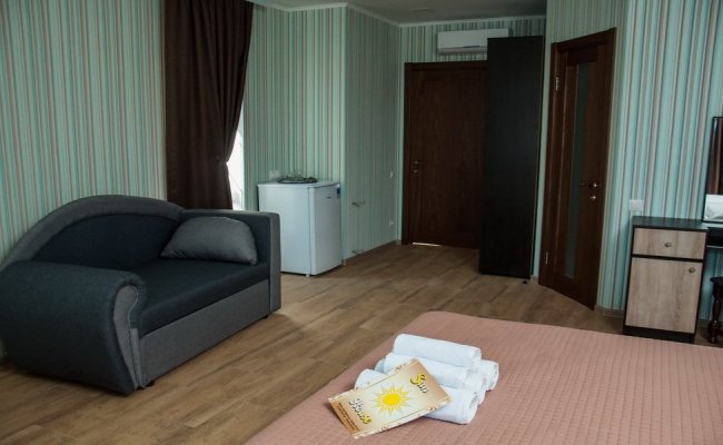 Роскошные и просторные 2-х, 3-х и 4-х местные номера Люкс класса (качественный евроремонт): санузел с душевой, сплит-системы, LCD-Телевизоры (IP-ТВ более 500 каналов), Wi-Fi Интернет, холодильники, двуспальные кровати с ортопед. матрацами, новая мягкая и корпусная мебель, полотенца, тапочки, туалетные принадлежности - всё абсолютно новое! Окна с УФ-защитой, каждый номер имеет выход на балкон. Есть номера с видом на море! В номерах регулярно производится влажная уборка и смена постельного белья. На этаже: микроволновая печь, электро-чайники, стир. машина-автомат, посуда – всё новое! Дом Солнца территория (видео-наблюдение круглосуточно): столики для отдыха, беседка из натур. дерева, мангал-шашлычница. Две автостоянки, бесплатная стоянка под домом.