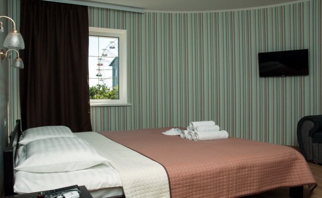 Набережная, 100 метров до моря и пляжа, 5 минут пешком до Приморской площади и центра города, ЦУМ (спорт-зона), кафе, рестораны, аттракционы, аптека, супермаркет, банки, остановки - всё рядом. Трансфер по договорённости. Цены договорные (мин. цена за номер), в зависимости от сезонности и времени пребывания в гостинице.