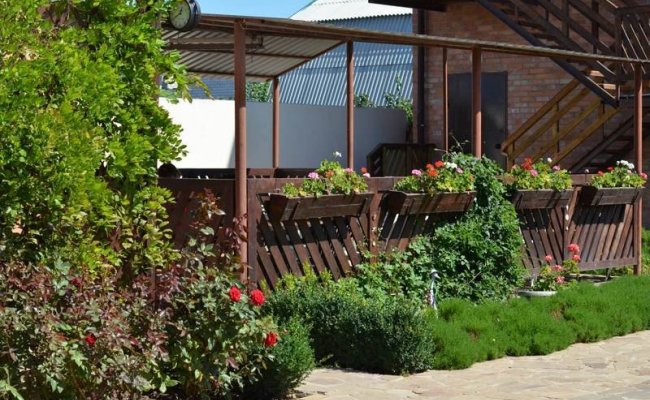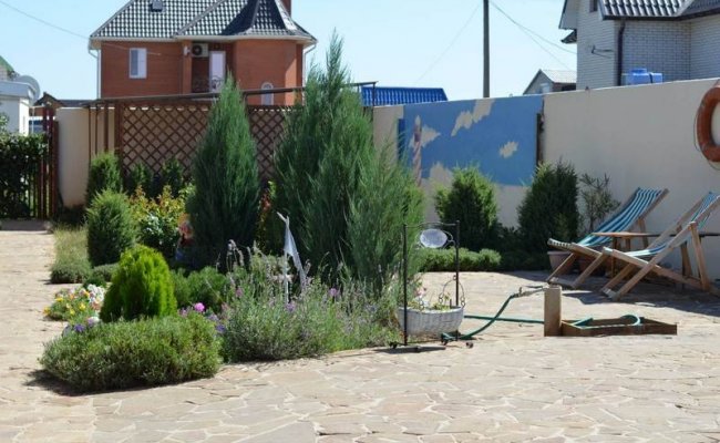 На территории находится корпус отеля, летняя кухня, летняя площадка, небольшая стоянка, детская площадка, площадка для барбекю, летний душ.