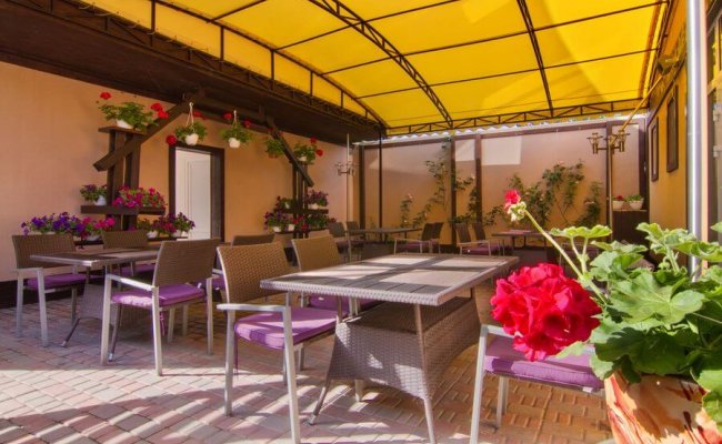В отеле есть кафе, с двумя залами, один из которых находится на террасе крышиотеля. Последний и стал визитной карточкой отеля «Пальма», ведь его посетителям открывается великолепный вид на окрестности.