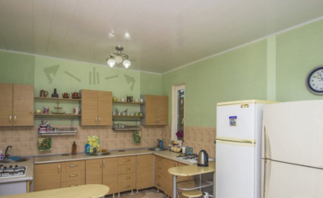 Общая кухня/столовая расположена в отдельном одноэтажном строении и располагает всем необходимым для хранения и приготовления пищи: 2 газовых плиты, холодильники, микроволновую печь, 3 кухонных мойки, посуда, обеденные столики. Есть кладовка для хранения овощей и фруктов. Водопроводная вода идет из артезианской скважины.