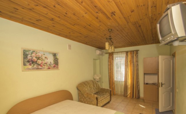 Все номера оборудованы необходимой мебелью, телевизорами (спутниковое ТВ), двуспальными кроватями с лечебными матрасами и кондиционерами. Душ (горячая вода – круглосуточно) и туалет также находятся в номере. Окна в номерах металлопластиковые с москитной сеткой. Возле каждого номера есть веранда, где можно спрятаться от летнего зноя, пообщаться с друзьями или просто почитать.