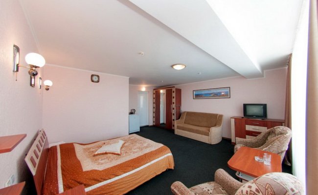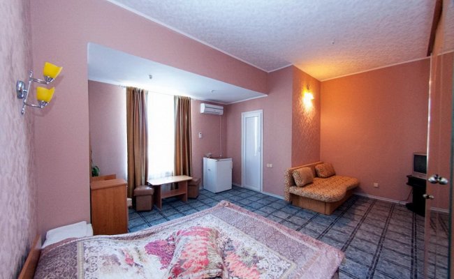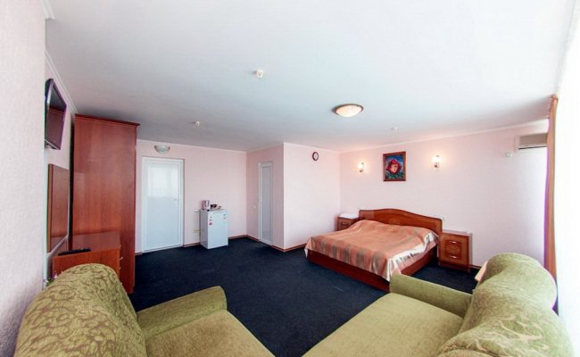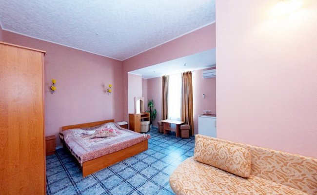 Одно- и двухкомнатные, 2-х, 3-х и 4-х мест. номера Люкс (санузлы и душевые в номере) и Полулюкс: кондиционеры (сплит-системы), инд. сейфы, телевизоры, Wi-Fi, холодильники, двуспальные кровати, мягкая и корпусная мебель. Есть номера с балконами и видом на море! На территории: современный бассейн открытого типа, зелёный сквер с ландшафтным дизайном, детская площадка с качелями, беседки для отдыха.