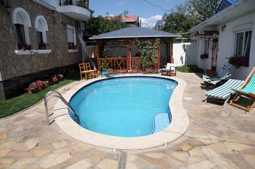 Во дворе расположен современный бассейн с подогревом воды, гидромассажем и светодиодной лентой, что придает особую красоту бассейну в темное время.
