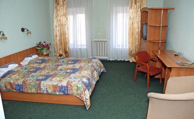 Цены не оправданы. Гостиница выглядит более-менее прилично только снаружи. Номера далеки от 3-х звёзд. Я еле смог открыть ключом дверь в номер — ручка и замок разболтаные. В номере ковровое покрытие взялось волной. Обои местами отошли на стыках. Гардины и тюль слетают с карнизов. Сантехника в номерах самая дешевая, кран почерневший, мыльница прожженая сигаретой, хочешь раздвинуть дверцы душевой кабинки — они слетают. В углах душа черная плесень, противно мыться. Очко унитаза — мягкая пластмаска, на которой лучше не делать неосторожных движений. В унитазе черно. Постельное белье не подходит по размеру, одеяло торчит из пододеяльника. Одним словом обустроено халтурно, съэкономлено на всём. В номере холодно. WiFi — слабый сигнал, постоянно прерывается связь. За 390 грн я ночевал в Симферополе в гостинице которая была намного приличней, чем в этой за 370 грн. Никому не рекомендую здесь останавливаться. (январь 2012)