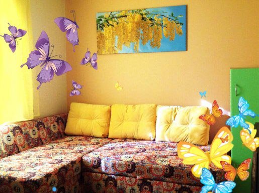 В доме: две раздельные спальни на первом этаже и две спальни на втором для размещения 8-9 человек. Одна из комнат оформлена как детская игровая.