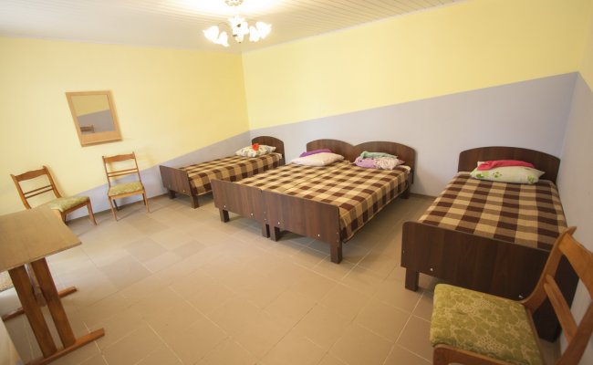 - Комната во флигеле. Вы можете выбрать одну из 4 комнат. Также во флигеле расположены 2 кухни. В каждой комнате может разместиться до 4 человек. Постельное белье и полотенце предоставляются. Удобства во дворе. Стоимость проживания от 200 грн./сут. за человека.