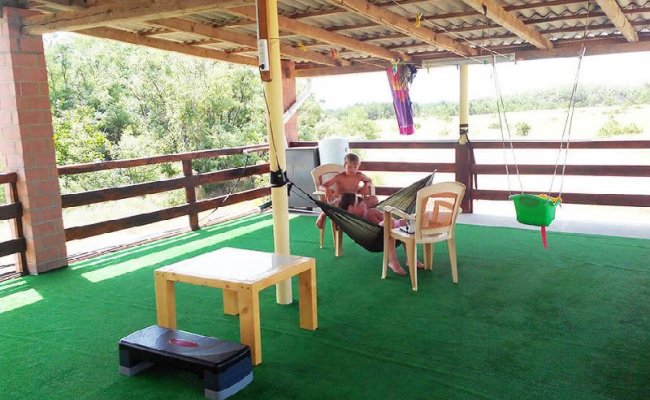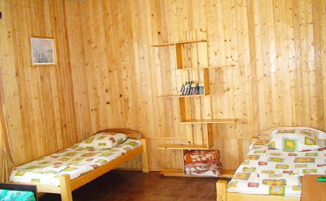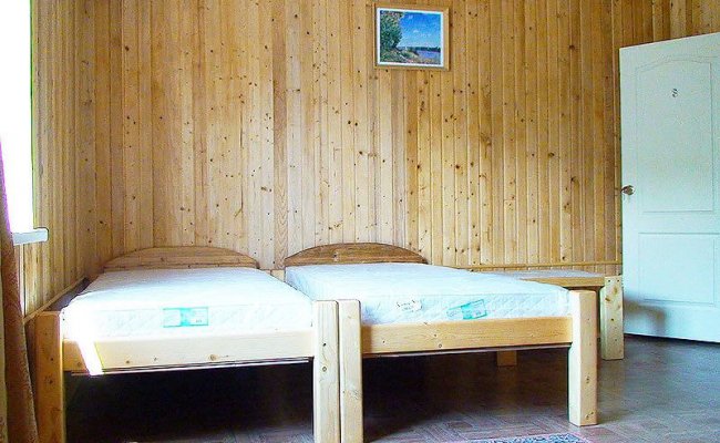 - Второй этаж. На этаже комнаты на 2-4 человека №5 (2 составляемых деревянных кровати, раскладной двуспальный диван, кондиционер, санузел в коридоре на 3 номера). №6 аналогичный №5. №7 (2 составляемых деревянных кровати, еврораскладушка, собственный санузел, сплит-инвертор). №8 (односпальная деревянная кровать, раскладушка, санузел в коридоре на 3 номера).