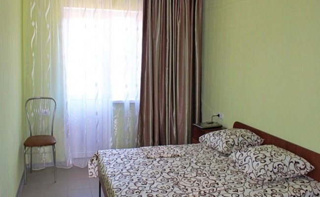 - Номера "Комфорт". Двуспальная деревянная кровать+ односпальная в трехместном, тумбочка, стол, 2 стула, шкаф, зеркало, холодильник, телевизор. Санузел с горячей водой.