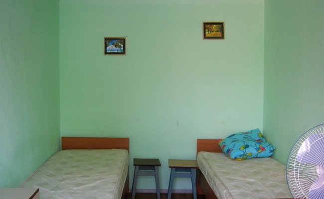 - Номер "Эконом". Две-четыре односпальные кровати с панцирной сеткой, 2 тумбочки, стол, 2-4 стула и зеркало. Душ с горячей и холодной водой, умывальники и туалет на территории базы.