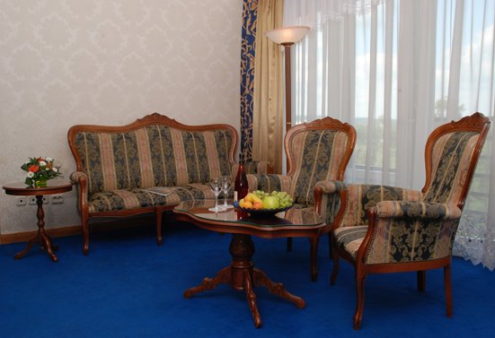 В номерах «Улучшенный», «Бизнес» и «Люкс» есть мини-бары, фены, тапочки и халат, в номерах категории «Бизнес» в стоимость номера входит Wi-Fi доступ к Интернет и все необходимое для приготовления чая и кофе.