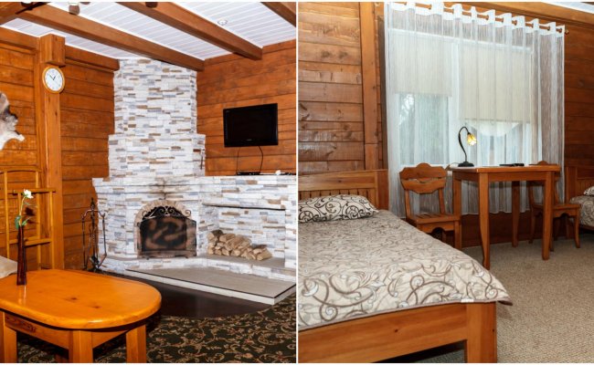 - VIP Коттедж. Двухэтажные VIP-коттеджи содержат на первом этаже прихожую, санузел и спальню. На втором камин, мини-бар, холодильник, балкон.