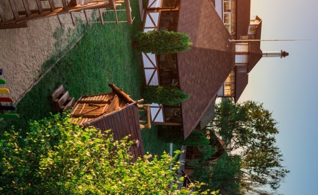 - Все для семейного отдыха. Оборудованная детская площадка из натурального дерева, батут. Профессиональные аниматоры.