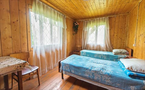 - Деревянный домик. Место в 2-3х местных домиках. В номере: душ, туалет, бойлер.