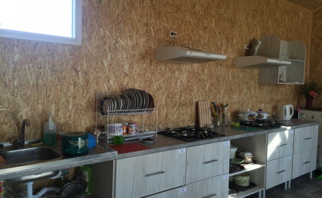 - Кухня-столовая с холодильниками, посудой, газовыми плитами, микроволновкой и мультиваркой;