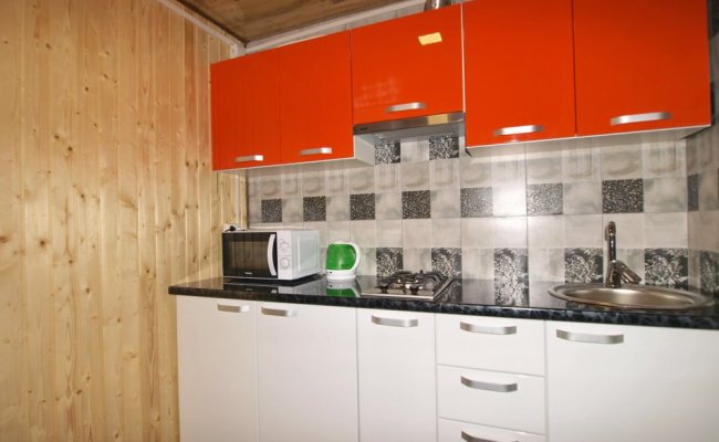 - «Апартаменты». В номере: две комнаты с 4-мя местами для размещения, кровати с ортопедическими матрасами, шкафы, тумбочки, кухня со всем необходимым для приготовления пищи (посуда, газовая плитка), полноценный санузел с душевой кабинкой и умывальником, телевизор, кондиционер, холодильник.