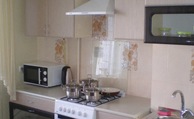 - Кухня. В наличии: посуда для приготовления еды, печка, микроволновка, электрочайник, холодильник.