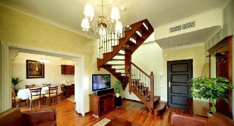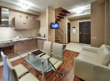 В отличие от гостиницы, каждый апартамент имеет кухню-столовую, повышающую полноценность и комфортность отдыха. Помещения кухни оборудованы изящной мебелью, электроплитами, вытяжными системами, посудомоечными машинами, холодильниками, СВЧ-печами, и полным комплектом посуды. Наличие кухни позволяет удовлетворить желание самостоятельно приготовить любимое блюдо и удовлетворить собственные вкусовые привычки. Волшебный нюанс апартаментов - большие панорамные окна, полные солнечного света и ярких карпатских пейзажей.