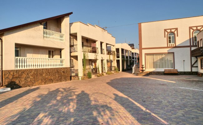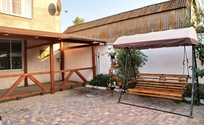 - Стандарт 2-3-х местный. В номере: полуторные кровати, тумбочки и шкаф, сплит-система, телевизор, холодильник, электрочайник и комплект посуды. Санузел на территории. Пресная вода с 18:00 до 21:00. Прием душа вне графика: холодный ― 20 гривен, горячий ― 30 гривен с человека.