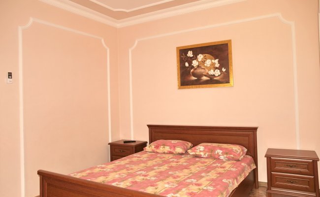 - Люкс 4-х местный двухкомнатный с видом на море. В номере: гостиная (диван, шкаф, тумбочки, кондиционер, телвизор), спальня (двуспальная кровать, шкаф, тумбочки, телевизор), кухонная зона (микроволновка, холодильник, электрочайник, комплект посуды мойка), полноценный санузел с горячей водой, два балкона.