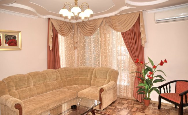 - Люкс трехкомнатный 6-ти местный в коттедже. В номере: гостиная (мягкий уголок, шкаф, тумбочки, кондиционер, телвизор), 2 спальни (двуспальная кровать и 2 односпальные, шкаф, тумбочки, телевизор), кухонная зона (холодильник, микроволновка, электрочайник, комплект посуды мойка), полноценный санузел с горячей водой, два балкона.