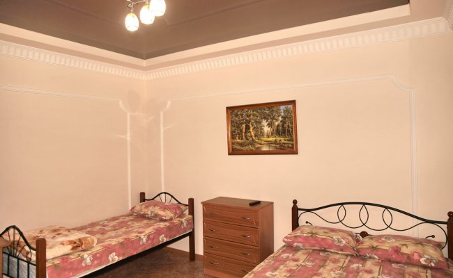- Эконом 3-4-х местный. В номере: полуторные кровати, тумбочки и шкаф, сплит-система, телевизор, холодильник, электрочайник и комплект посуды. Санузел на территории. Пресная вода с 18:00 до 21:00. Прием душа вне графика: холодный ― 20 гривен, горячий ― 30 гривен с человека.