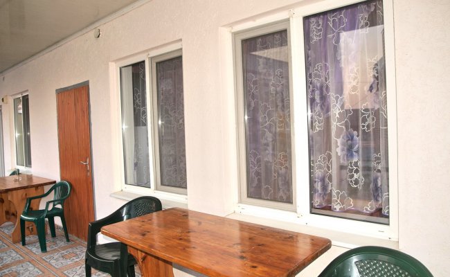 - Стандарт 4-х местный. В номере: угловой диван, три полуторные кровати, шкаф и тумбочки, кондиционер, телевизор, холодильник, электрочайник и комплект посуды. Санузел на территории. Пресная вода с 18:00 до 21:00. Прием душа вне графика: холодный ― 20 гривен, горячий ― 30 гривен с человека.