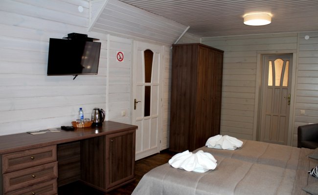 - 2-х местный 1-комнатный номер: в номере 2-х спальная и односпальная кровати, ТВ, балкон с видом на озеро.