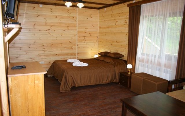 - Второй номер полулюкс семейный с видом на горы, расположенный на втором этаже коттеджа. Предусмотрена двуспальная кровать, раскладной диван, телевизор, холодильник и санузел, балкон с видом на горы.