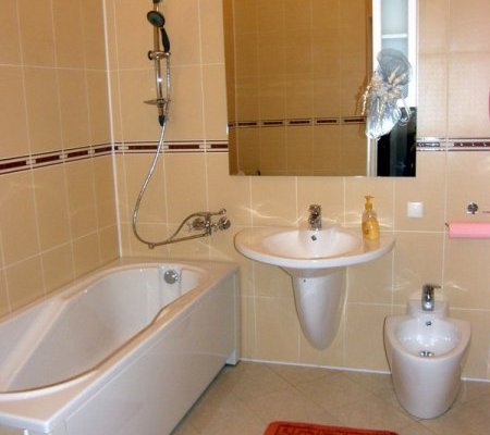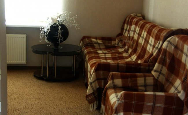 (Двухкомнатный номер с двумя большими двухспальными кроватями, кухней, двумя застеклёными балконами, двумя санузлами, спутниковым TV, холодильником, кондиционером, электрической плитой, стиральной машиной.)