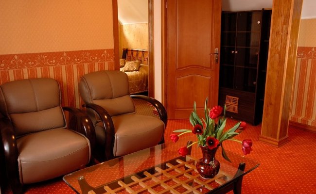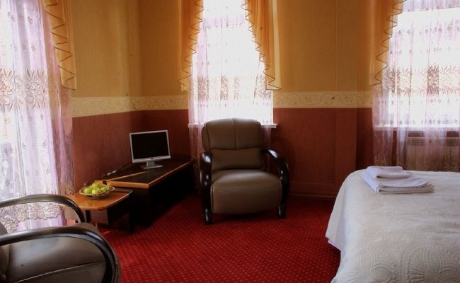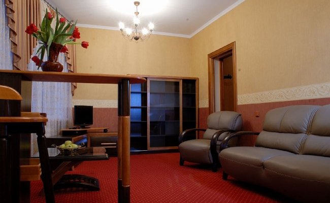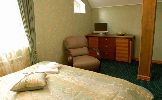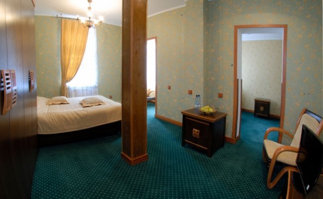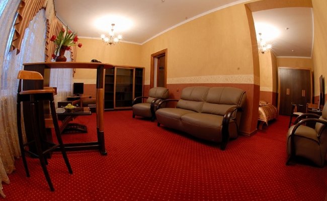 - Номери Полу-Люкс - Для своих гостей отель предлагает четыре номера категории Полу-Люкс. Эти номера идеально подходят гостям, которые планируют остановиться на длительный период, для этого была спланирована увеличенная площадь номера, а так же предусмотрено достаточное количество мебели для верхней одежды и багажа. Общая площадь номеров от 22 до 39 м2 , в каждом номере двуспальная кровать с ортопедическим матрасом, мягкий уголок, возможность добавления дополнительной кровати.