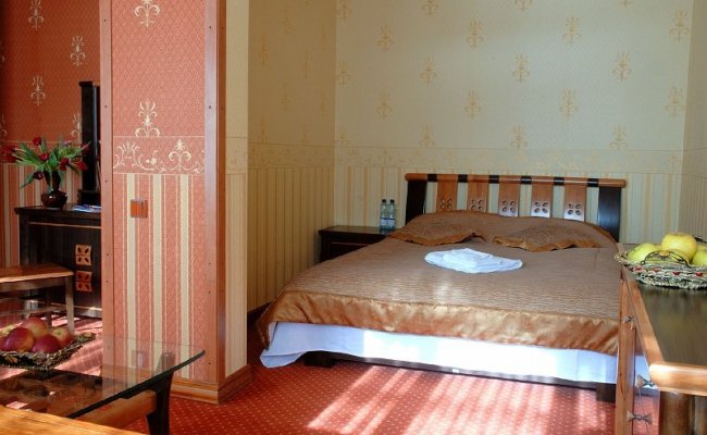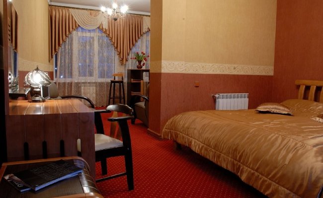 - Номери Люкс – Отель располагает пятью комнатами категории Люкс. Эти изысканные номера идеально подходят гостям, которые планируют остановиться на длительный период, либо для семей с детьми. Для этого в номерах предусмотрено достаточное количество шкафов для верхней одежды и багажа, а так же серванты и вся необходимая мебель для того что бы пребывание гостей в отеле было как можно комфортней. Общая площадь номеров от 31 до 45 м2, в каждом номере двуспальная кровать с ортопедическим матрасом. Возможность добавления дополнительной кровати.
