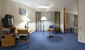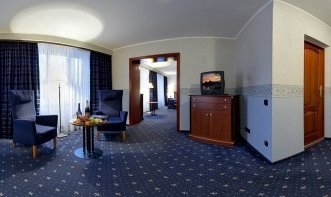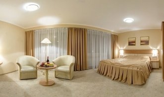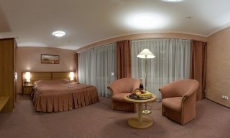 Двухкомнатный двухместный номер Люкс средней площадью 90,0 м2, ванная – 6,0 м2 (большинство ванных оборудованы биде). В номере - кровать 180 см, раскладной диван.