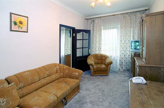Номера всех категорий оборудованы санузлами (с круглосуточным обеспечением холодной и горячей водой), холодильниками, мини-сейфами, телефонами с внутренней, городской и международной связью, телевизорами (спутниковое ТВ), уборка номера - ежедневно, смена белья - 2 раза в неделю, смена полотенец - ежедневно, пол - паркет и ковровое покрытие, балкон.