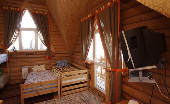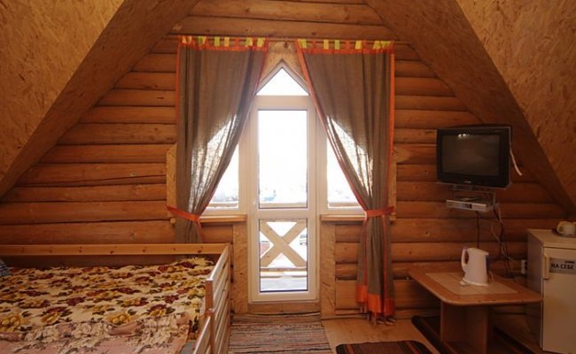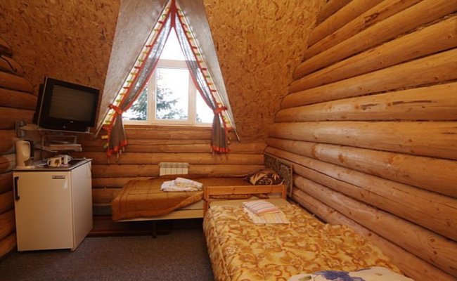 На первом этаже есть двухместный и четырехместный номер, санузел (душ, туалет) на этаже. На втором этаже трехместный и пятиместный номер. Во всех номерах односпальные кровати, ТБ, холодильник. В 5-местном номере есть балкон. Питание можно заказывать в кафе в 30 м от отеля.