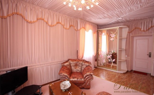 К вашим услугам уютные, комфортные одно- и двухкомнатные номера европейского класса со всеми удобствами: телевидением, скоростным Wi-Fi Интернет, кондиционерами, мини-барами, санузлами. Каждый номер нашей гостиницы имеет особенную цветовую гамму интерьера: однокомнатный люкс "Love" – розовый, однокомнатный "Blue" – синий, двухкомнатные "Brown" и "Green" – коричневый и зеленый соответственно.
