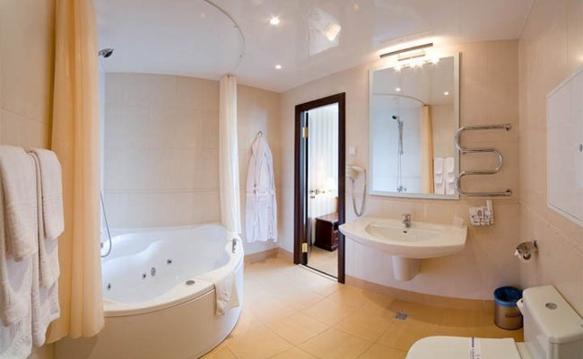 Номер оборудован: двухместной кроватью, кондиционером, кабельным телевидением, телефоном, доступом к сети Интернет, мини-баром, ванной с гидромассажем, феном, халатом.
