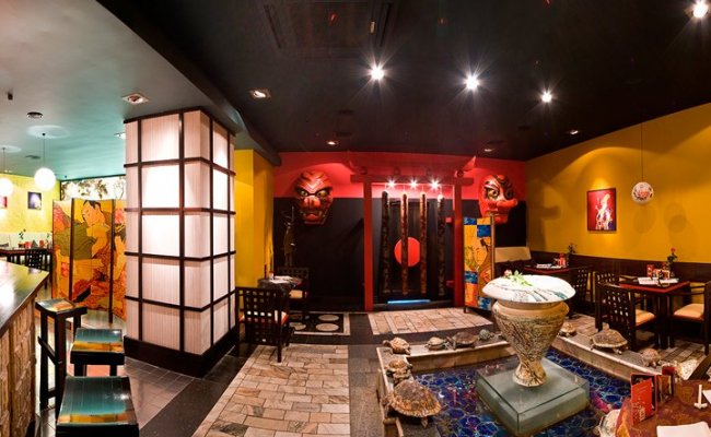 Японская кухня. 2-й этаж. Большое крыло гостиницы. Работает с 12.00 до 24.00.