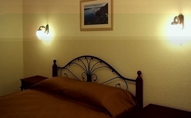 В другой комнате расположена роскошная двухместная кровать с ортопедическим матрацем, 2 прикроватные тумбочки и жидкокристаллический экран (51 канал) на противоположной стене.