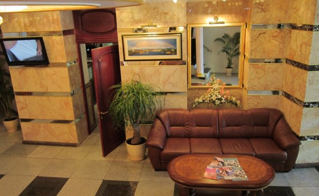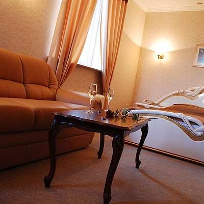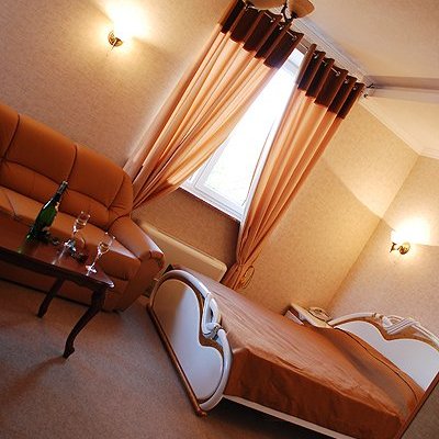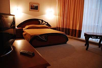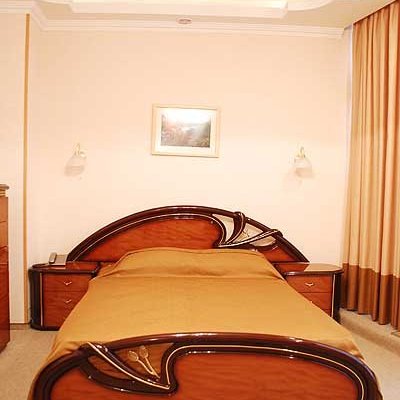 В таком номере есть зеркальный шкаф-купе, двухместная кровать с ортопедическим матрацем, 2 прикроватные тумбочки, раскладывающийся кожаный диван, журнальный столик, телевизор (51 канал), мини-бар, сейф, телефон, доступ в Интернет.