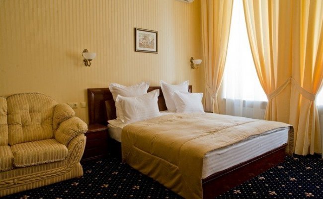 - Люкс. Все номера категории Люкс имеют площадь комнаты от от 33 до 37 м2 с общей широкой кроватью (180 x 200)